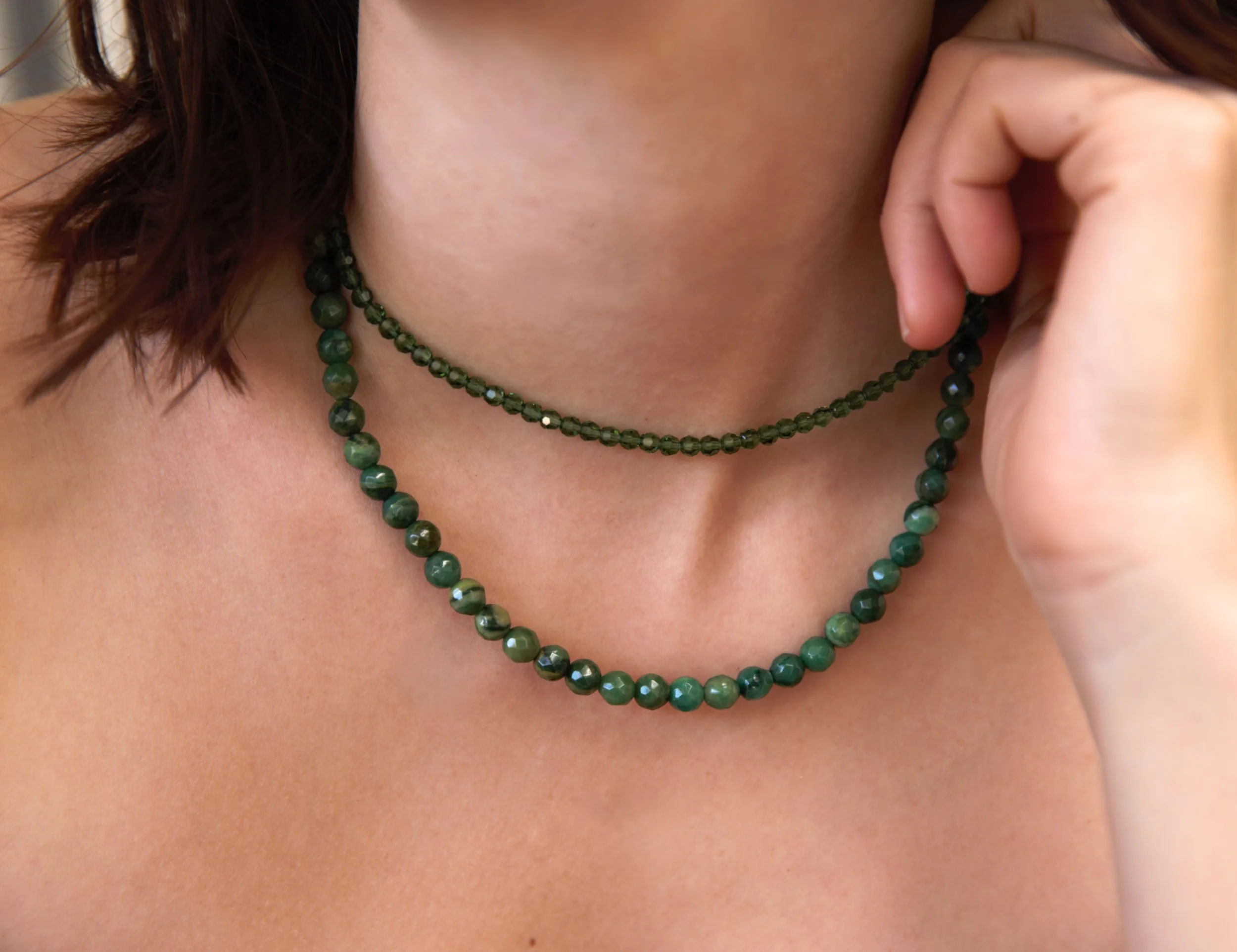 • African jade and Swarovski tourmaline crystal beads